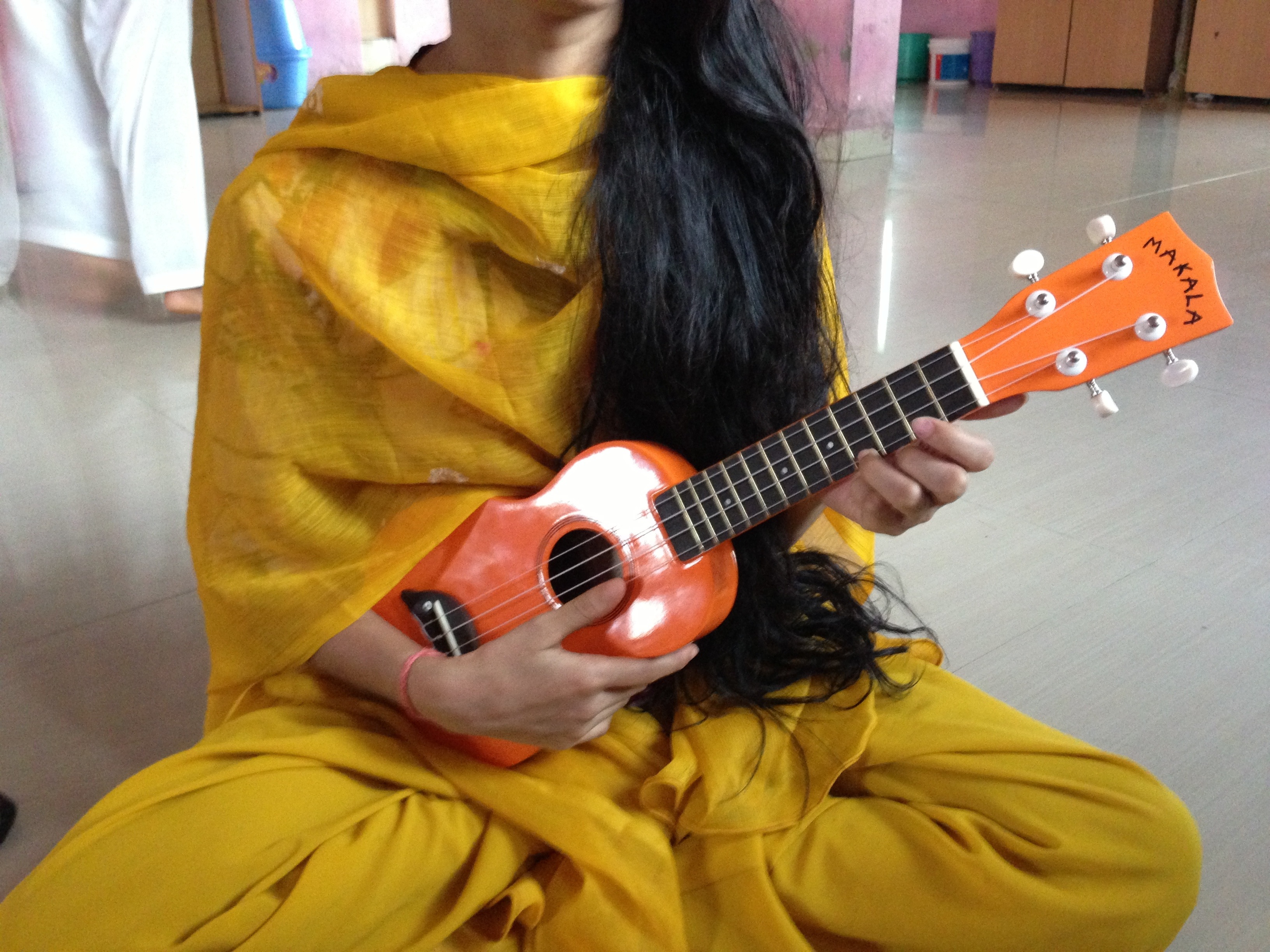 Laurie came to India firstly as a traveler. It was then that she met a lady working for Unicef and learnt about the horror of the sex trafficking industry prevalent in the country. Laurie was shocked, but wasn’t sure about how to plug into the issue. She never forgot about it though – and ten years later, wound up back in India, bringing out stacks of ukuleles with her, to teach girls who had been victims of these crimes music… and form ‘survivor girl ukulele band: bringing restoration and hope to survivors of human trafficking through the healing power of music and love.’